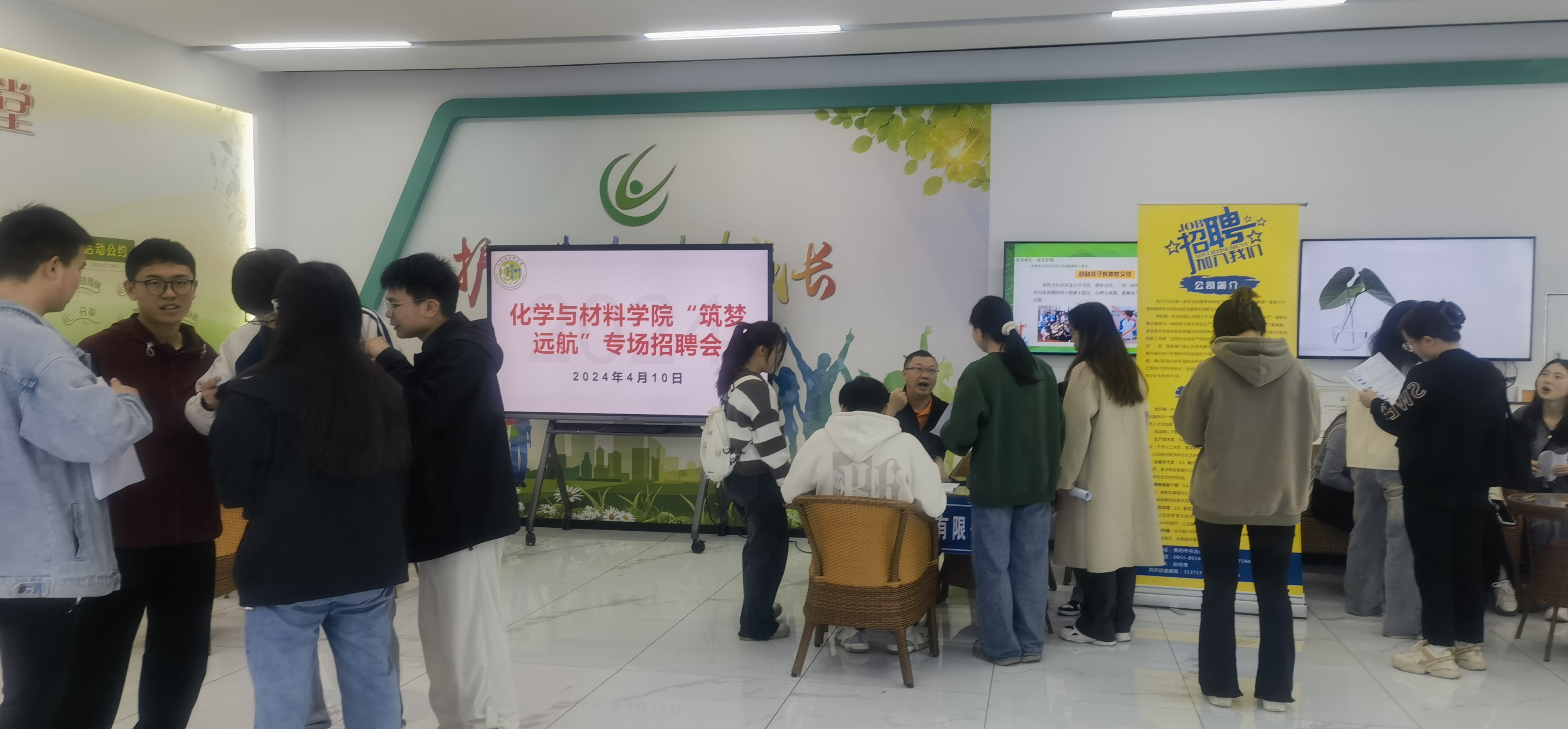 2024年4月10日,js3333线路检测中心在老员工事务服务中心举办2024届毕业生“筑梦远航”专场招聘会。贵州求实检测技术有限公司、贵阳新天药业股份有限公司、贵州基越检测有限公司等14家单位带着近100个岗位参加招聘会。