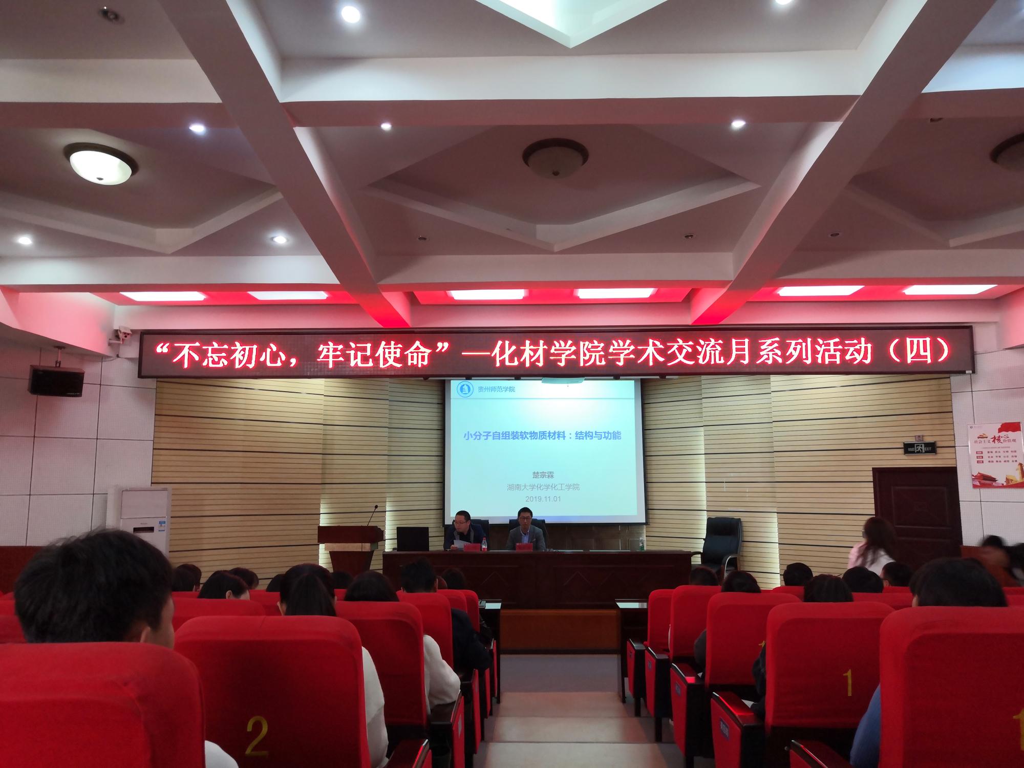 为加强学术交流,营造学术氛围,11月1日下午,js3333线路检测中心邀请湖南大学教授、岳麓学者楚宗霖于宁静楼150举行了题为《小分子自组装软物质材料:结构与功能》学术讲座。部分老师及材料科学与工程的全体在校本科生聆听了本次讲座,讲座由学院副经理王毓主持。